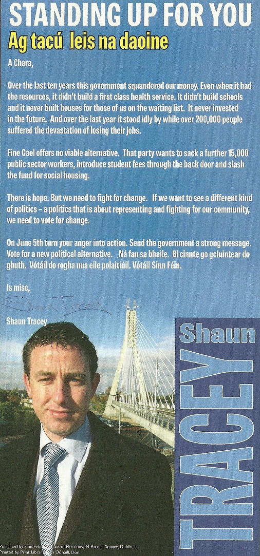 Shaun Tracey -Sinn Fein – 2009 Dublin South By-Election » stracey09a