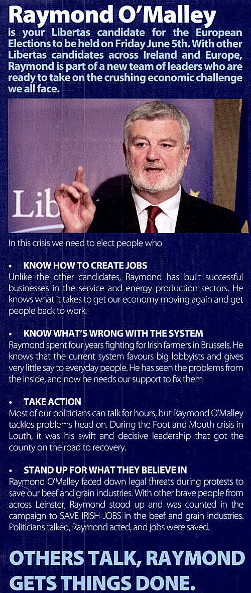 Leaflet from Raymond O’Malley -Libertas -2009 European Elections -Ireland East » romalley2a