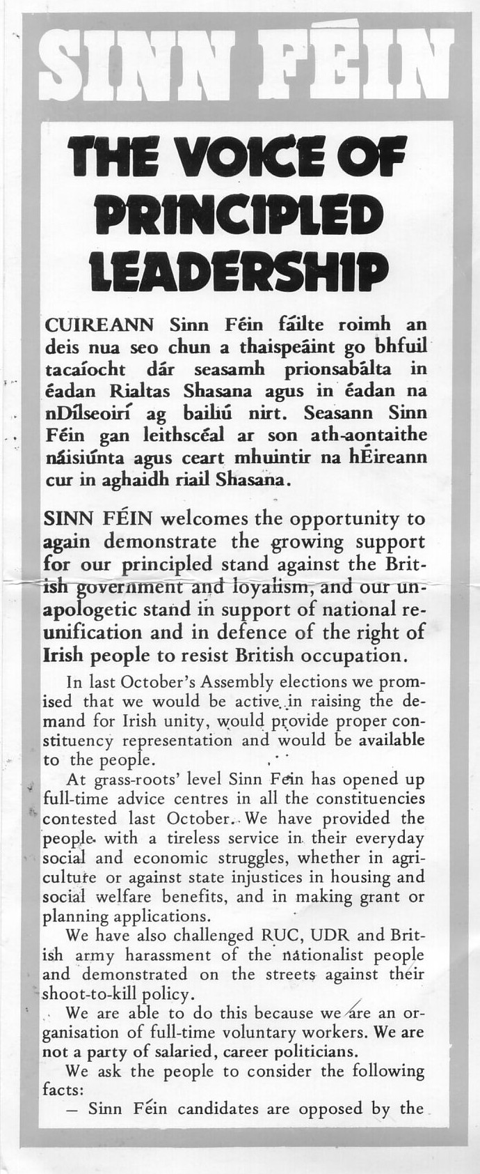 “Sinn Fein -The Voice of Principled Leadership” leaflet from the 1983 Westminster Elections » votesf83a