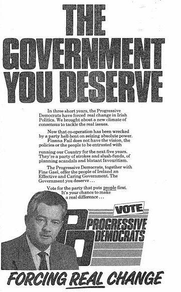 “The Government You Deserve” -Progressive Democrats 1989.. with a great attack on Fianna Fail » pd89