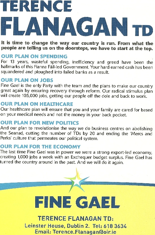 Leaflet from Terence Flanagan- Fine Gael- 2011 General Election Dublin North East » tflanagan11b