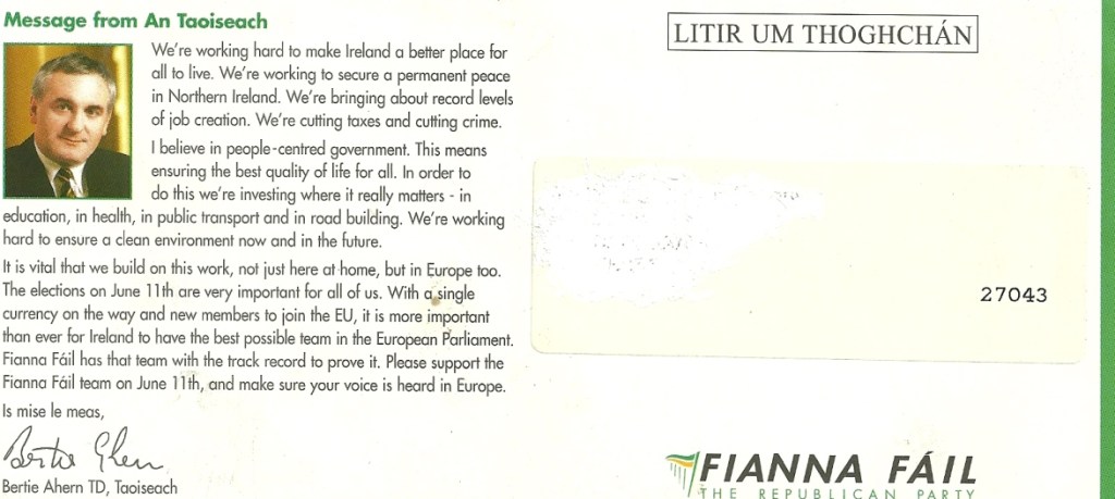 Leaflet from Gerry Collins, Brian Crowley -Fianna Fail -1999 European Elections Munster » collinscrowley99b