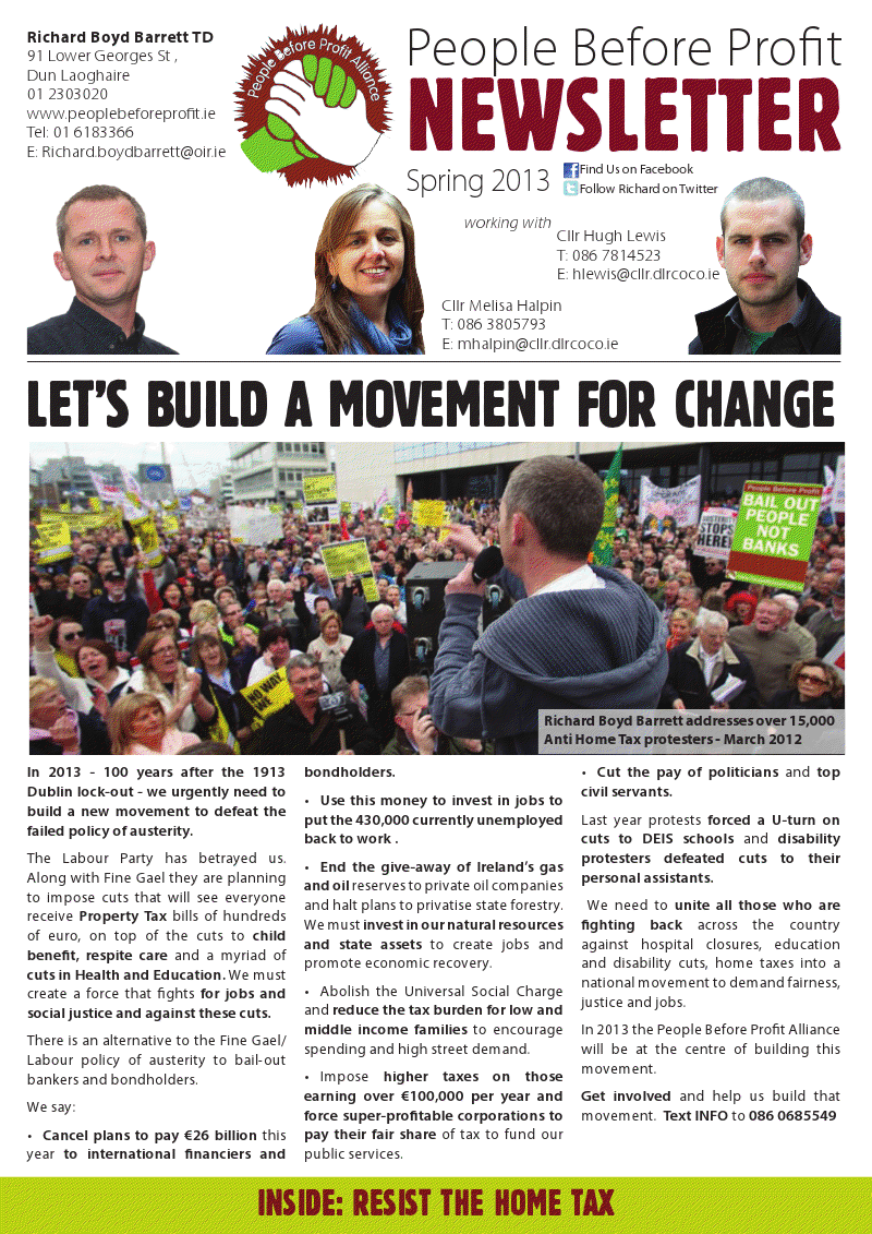 People Before Profit -Dun Laoghaire Newsletter Spring 2013 » pbpjan2013a