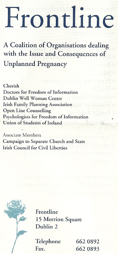 From the 1992 Abortion Referenda a pro choice leaflet from ‘Frontline’ » frontline92e