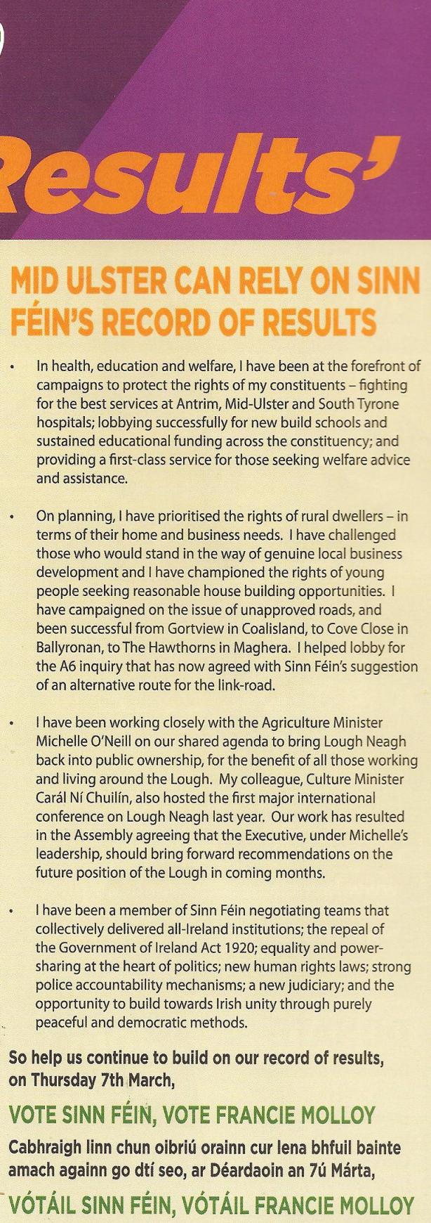 Leaflet for Francie Molloy- Sinn Fein -2013 Mid Ulster by Election » Molloy4001a