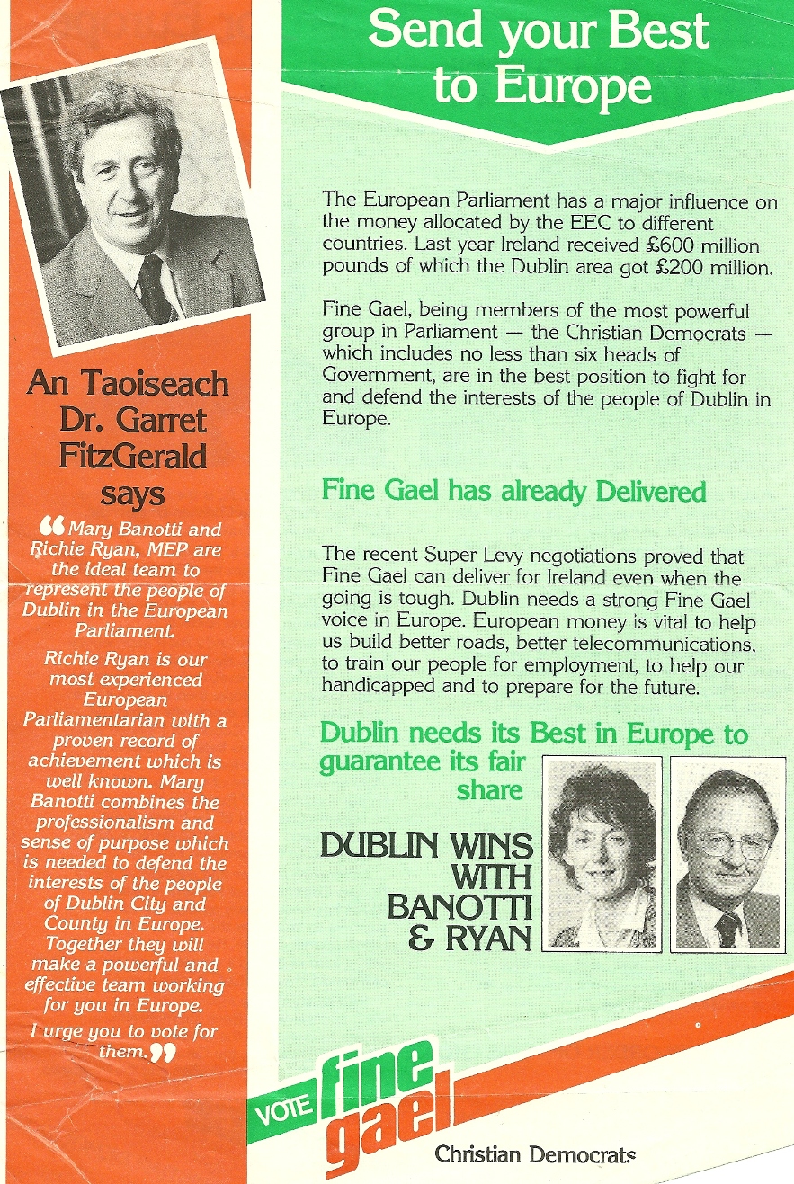 “Send your Best to Europe” Leaflet from Mary Banotti, Richie Ryan-Fine Gael- 1984 European Elections Dublin » banottiryan1