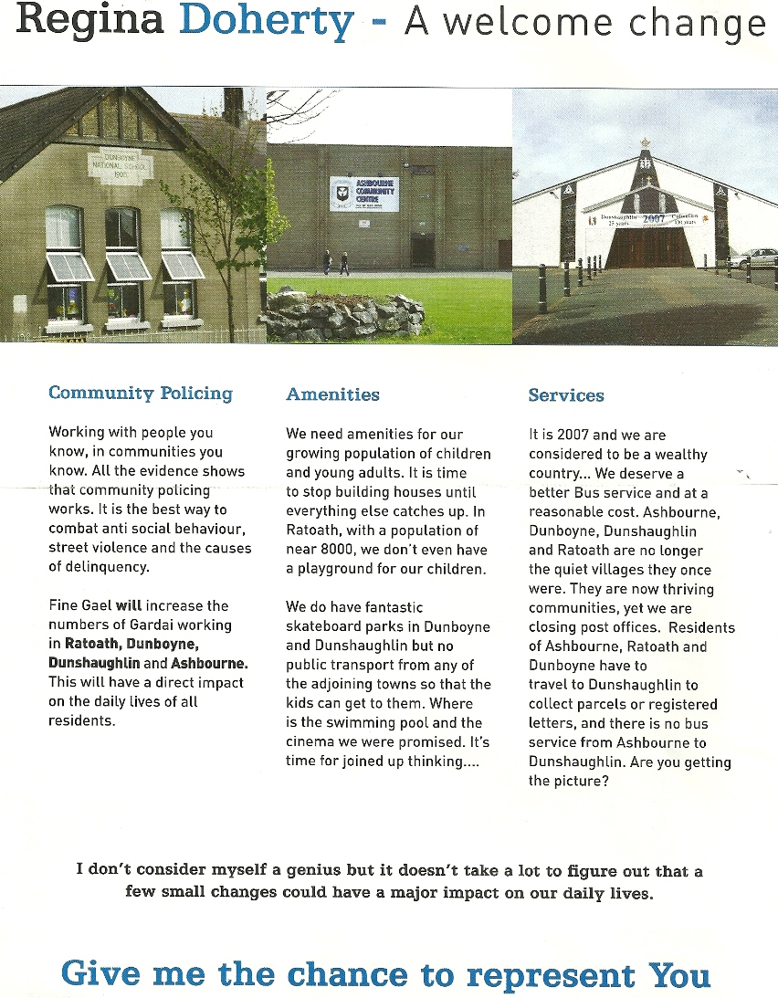 With Statue of the Virgin Mary… Leaflet from Regina Doherty- Fine Gael- Meath East 2007 General Election » rdohertynovena07b