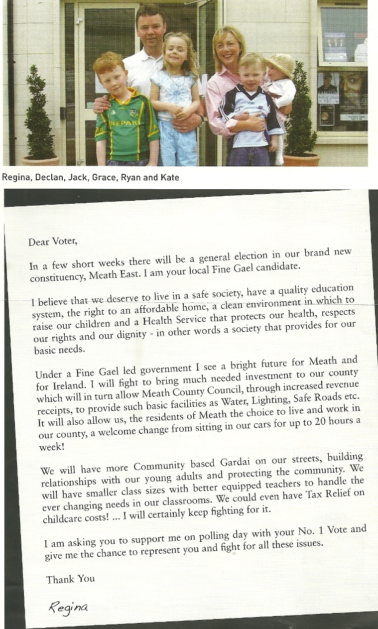 With Statue of the Virgin Mary… Leaflet from Regina Doherty- Fine Gael- Meath East 2007 General Election » rdohertynovena07c
