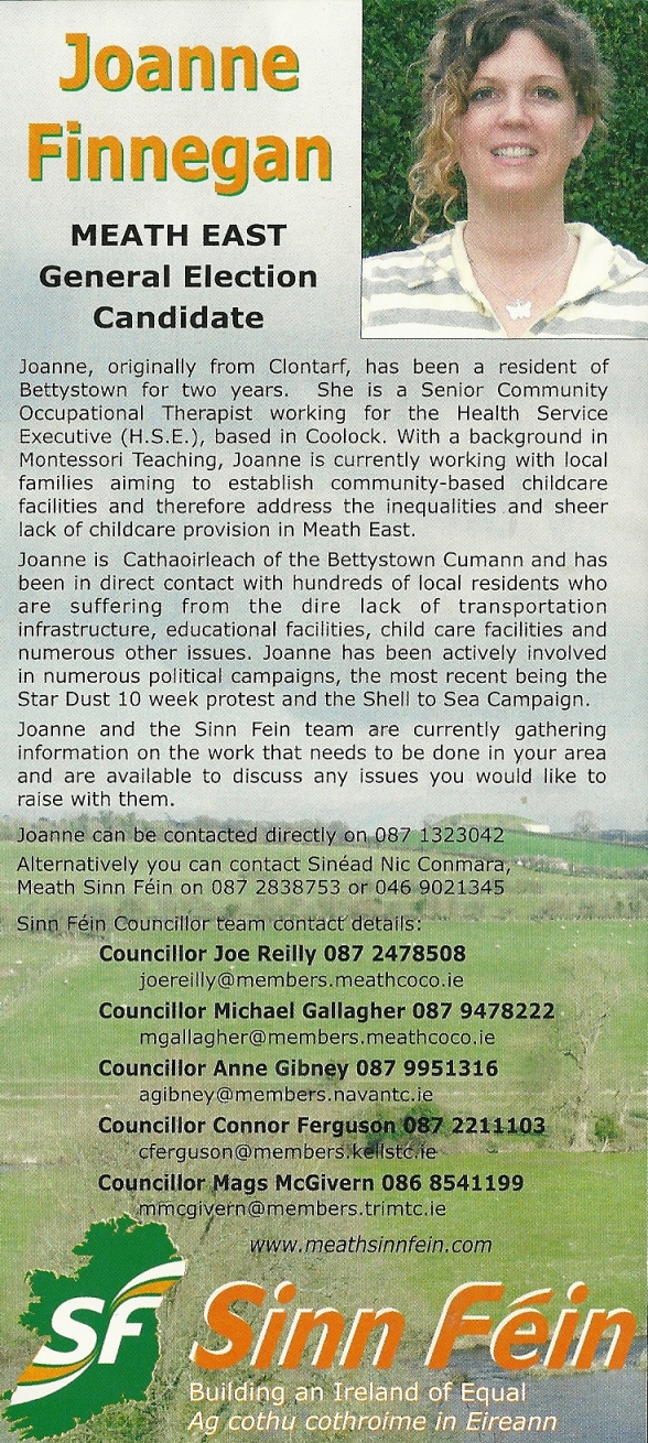Leaflet from Joanne Finnegan- Sinn Fein -Meath East 2007 General Election » jfinnegan07a