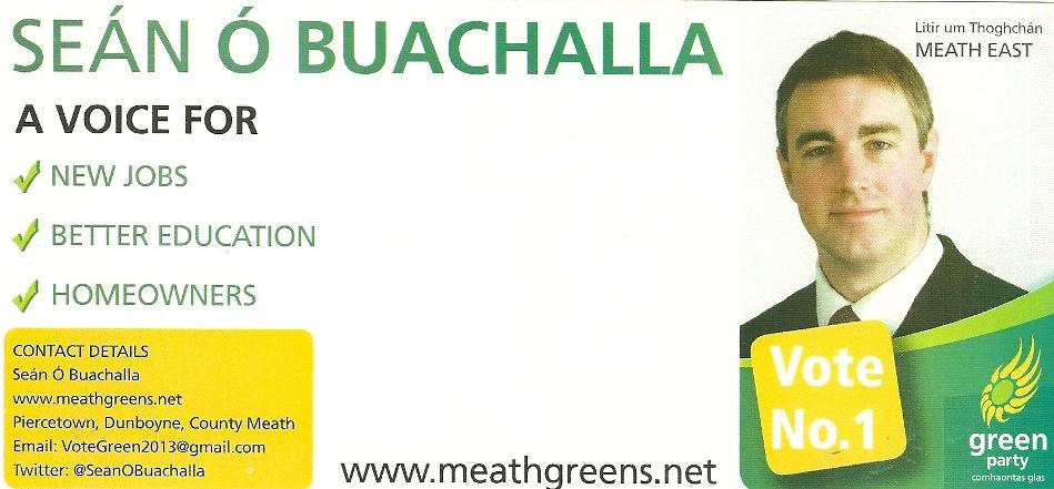 Litir um Thoghchán from Seán Ó Buachalla- Green Party -2013 Meath East By-Election » sob13a