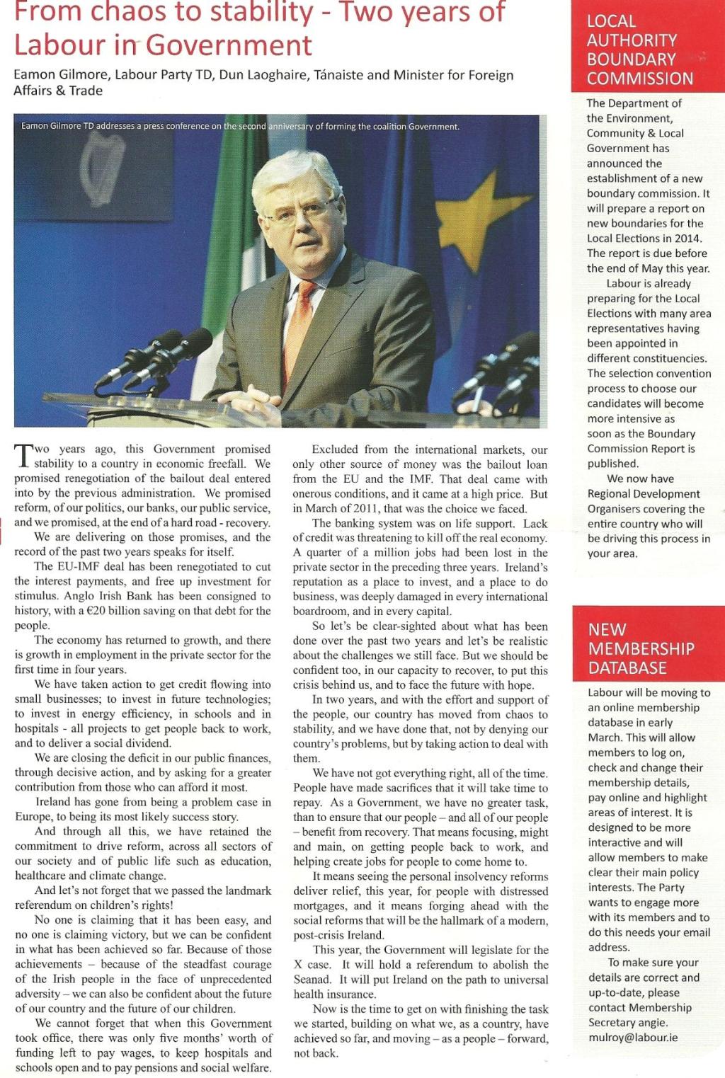 Labour Connect (Members Newsletter) -‘Labour: Shaping Our Recovery’ -Spring 2013 » connect4