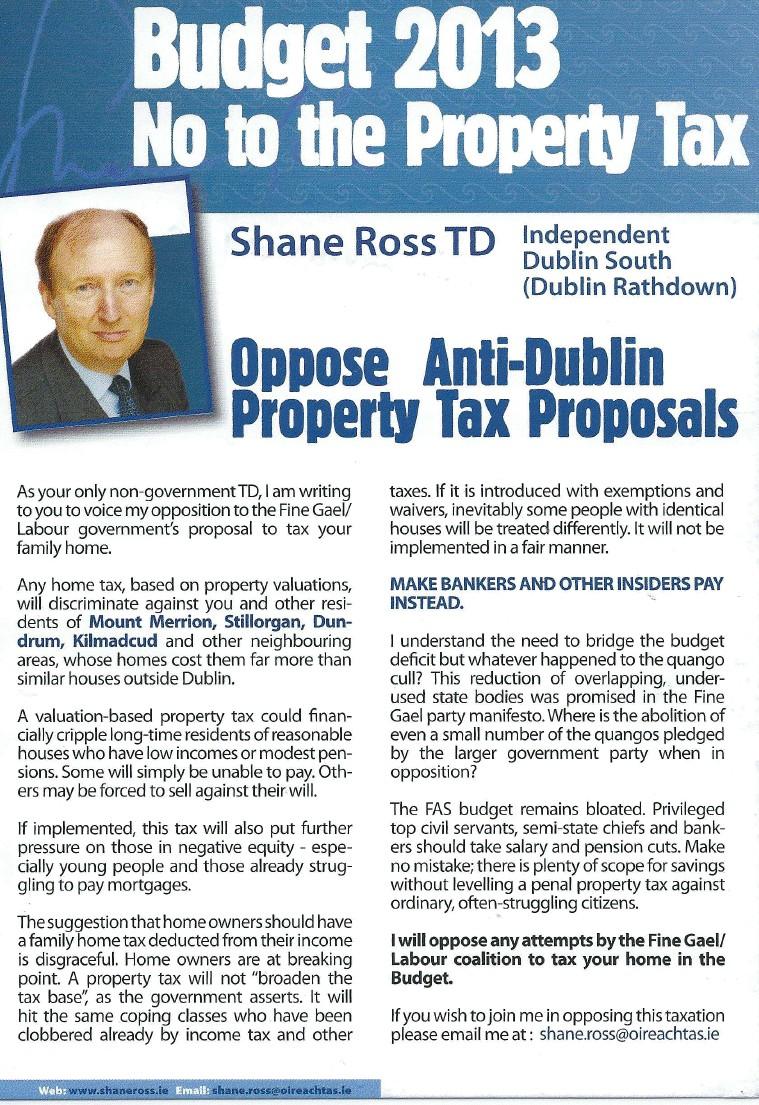 “Oppose Anti-Dublin Property Tax Proposals” -Leaflet from Shane Ross -Independent » srossprop1a