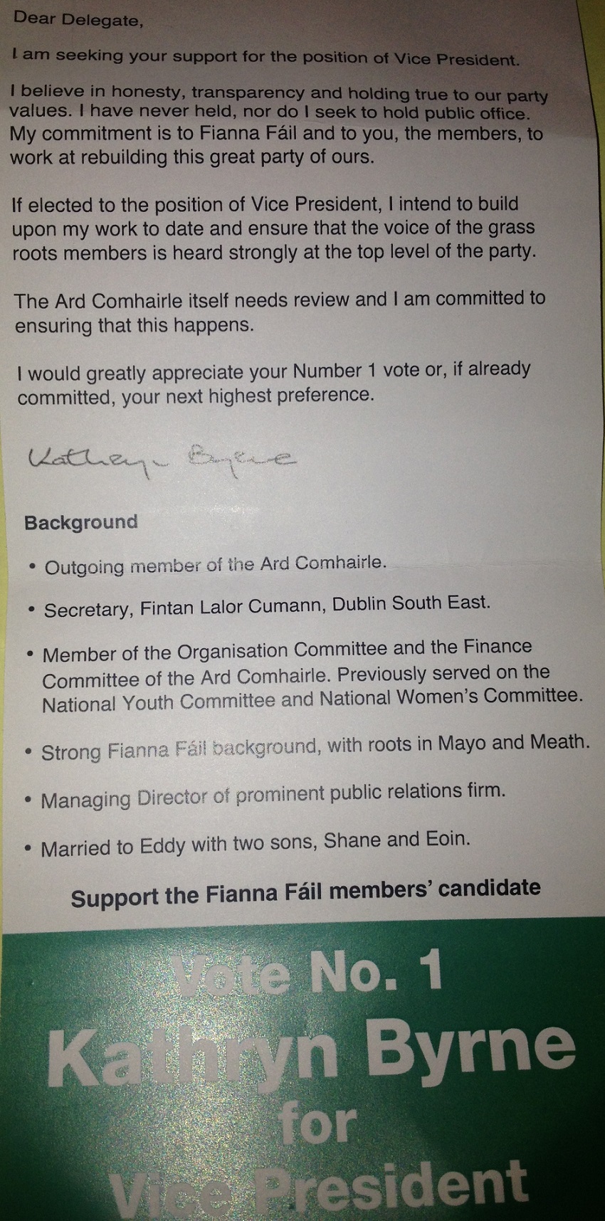 Kathryn Byrne for Vice President of Fianna Fail Leaflet » kbyrne2