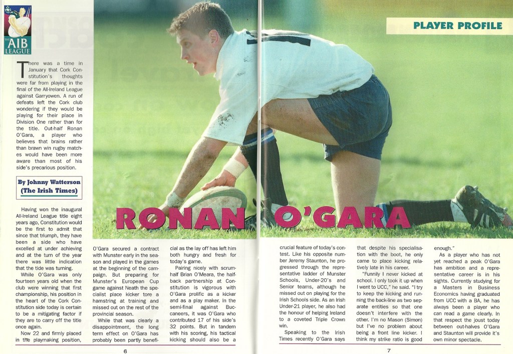 1999 Profile of Ronan O’Gara from the AIL League Final Match Programme. » rog99