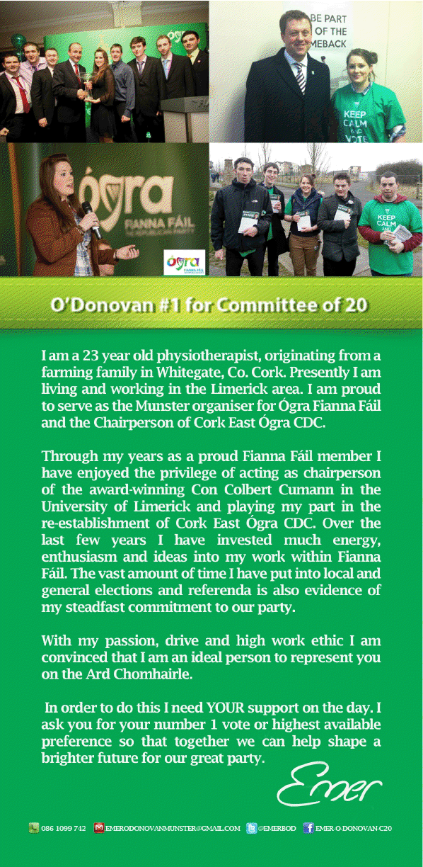 Flyer from Emer O’Donovan -Fianna Fail Committee of 20 Elections 2013 » eodc20b