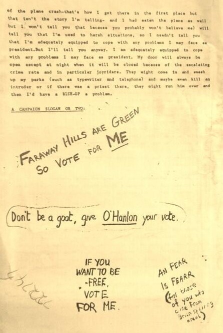 Leaflet from Ardal O’Hanlon -1985 NIHE Students Union Election » ardal4