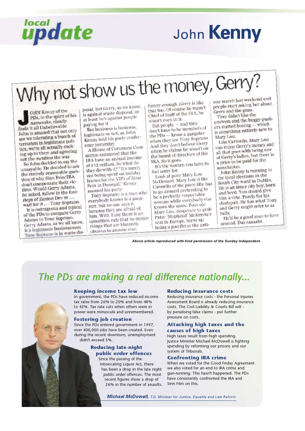 Leaflet from John Kenny -Progressive Democrats -2004 Local Elections South East Inner City » jkenny2