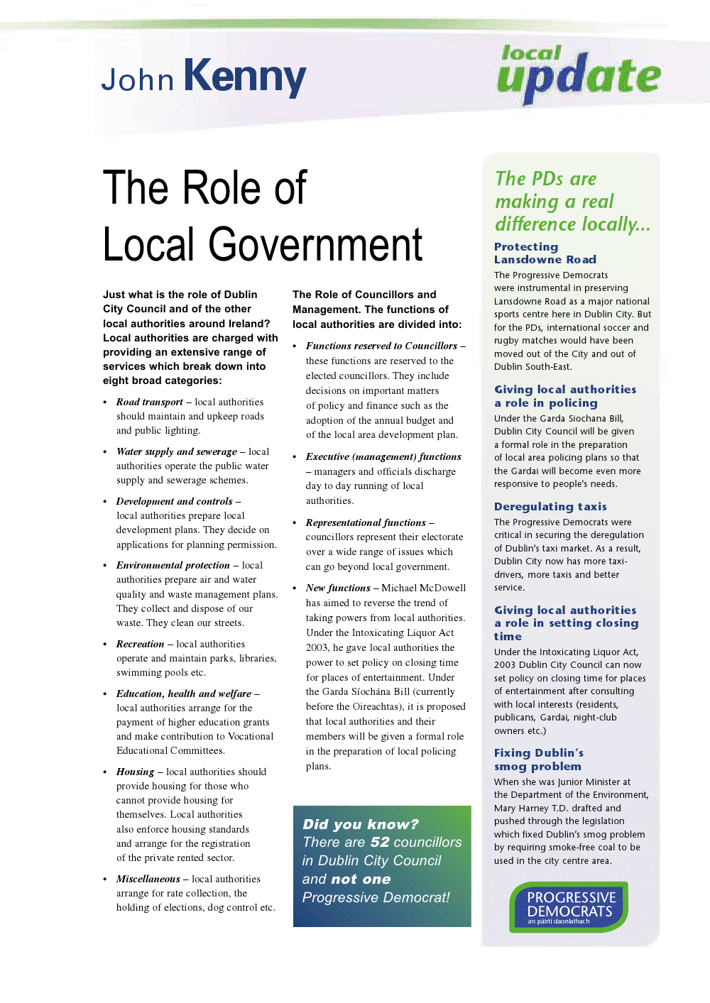 Leaflet from John Kenny -Progressive Democrats -2004 Local Elections South East Inner City » jkenny3