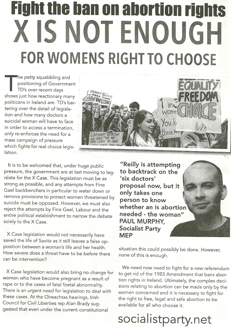 “Fight the ban on abortion rights .. X is not Enough” Leaflet from the Socialist Party. » SPabortion1