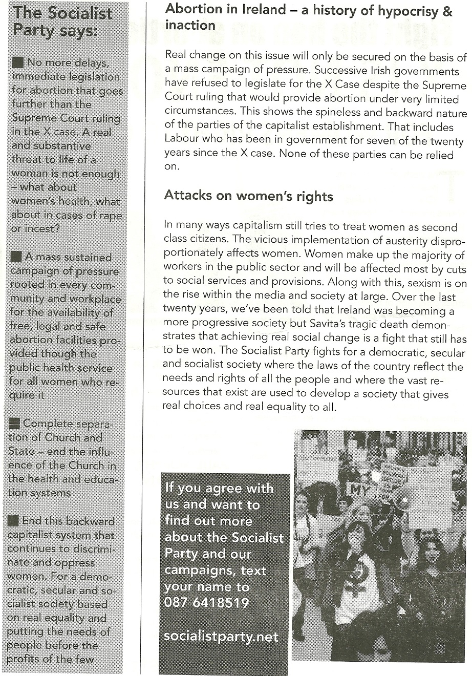 “Fight the ban on abortion rights .. X is not Enough” Leaflet from the Socialist Party. » SPabortion2