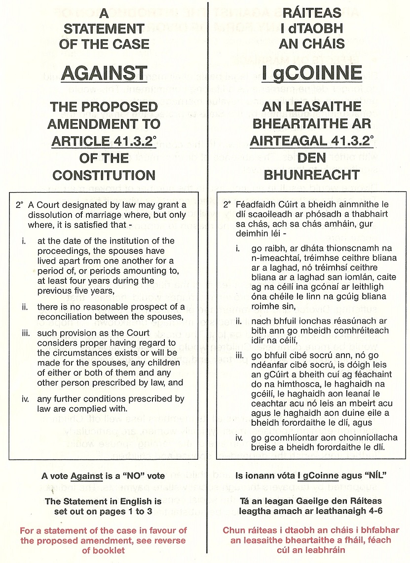 The Government Information Booklet from the 1995 Divorce Referendum » against1
