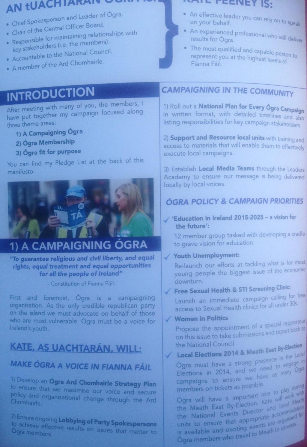 ‘Vote Kate Feeney No 1 for Uachtarán’ of Ogra Fianna Fail Leaflet » kfeeney2
