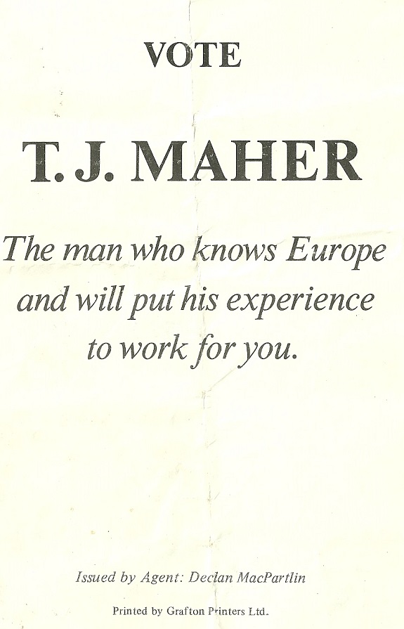 Leaflet from T J Maher -Independent -1979 European Elections- Munster » tjmaher79d