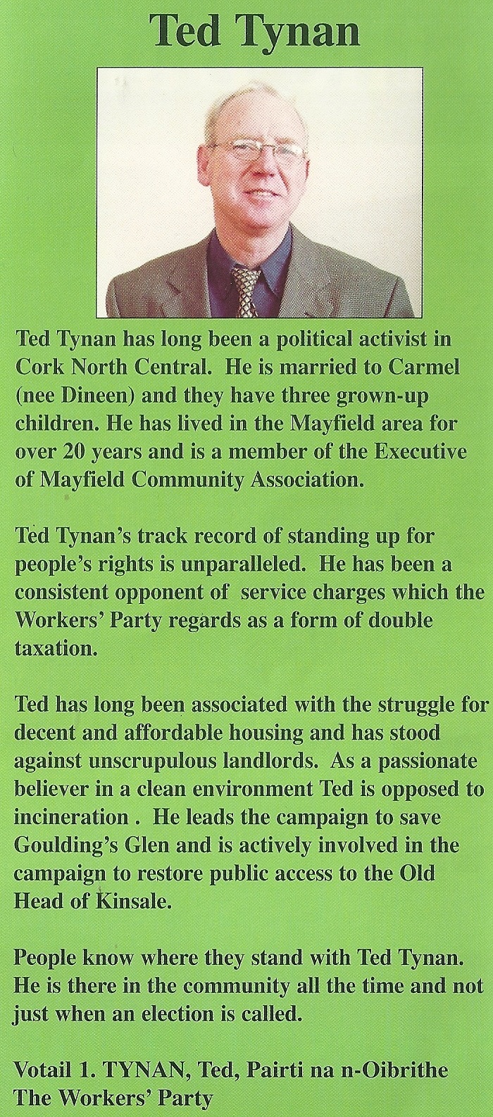 2002 Leaflet from Ted Tynan -Workers Party -Cork North Central » tynan02b