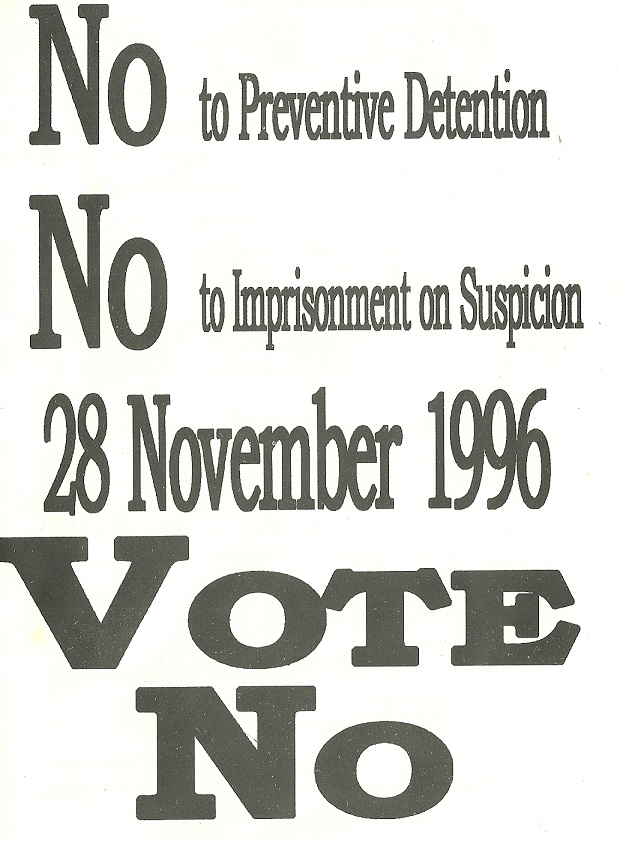 ‘Defend the Right to Bail’ -Vote No leaflet from ‘The Right to Bail Campaign’-1996 Bail Referendum » NoBail1