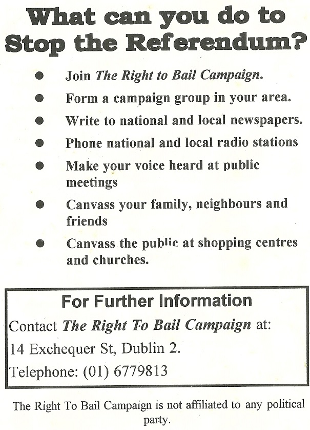 ‘Defend the Right to Bail’ -Vote No leaflet from ‘The Right to Bail Campaign’-1996 Bail Referendum » nobail4