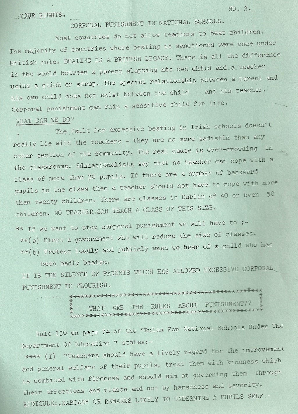 From 1969 ‘Your Rights. Corporal Punishment in National Schools’ from a Labour Party Magazine ‘Action’ » actioncp1