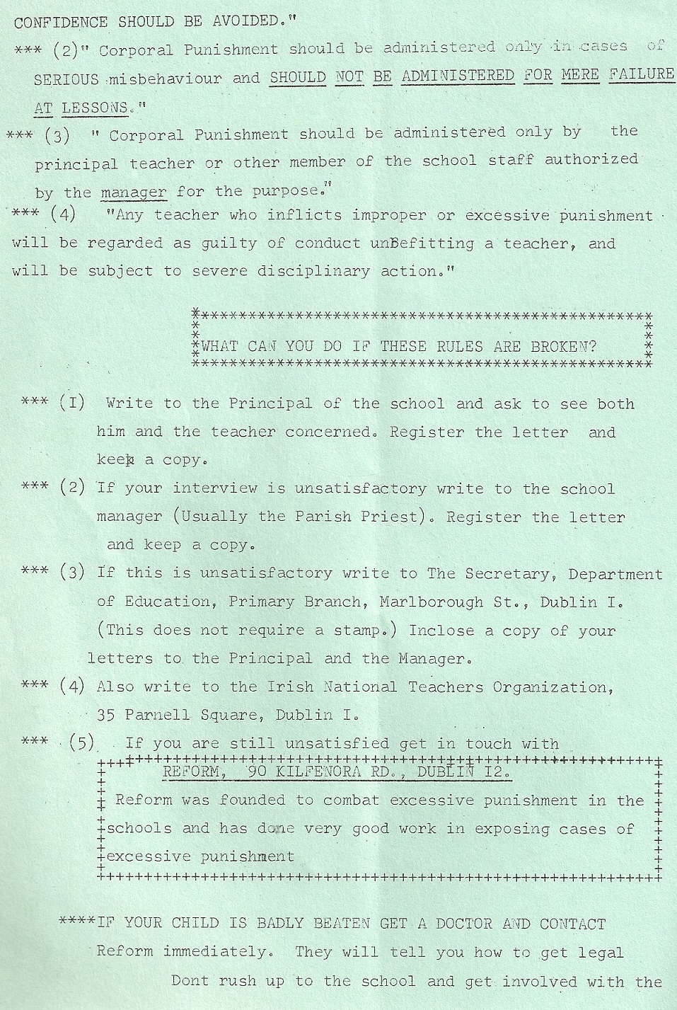 From 1969 ‘Your Rights. Corporal Punishment in National Schools’ from a Labour Party Magazine ‘Action’ » actioncp2