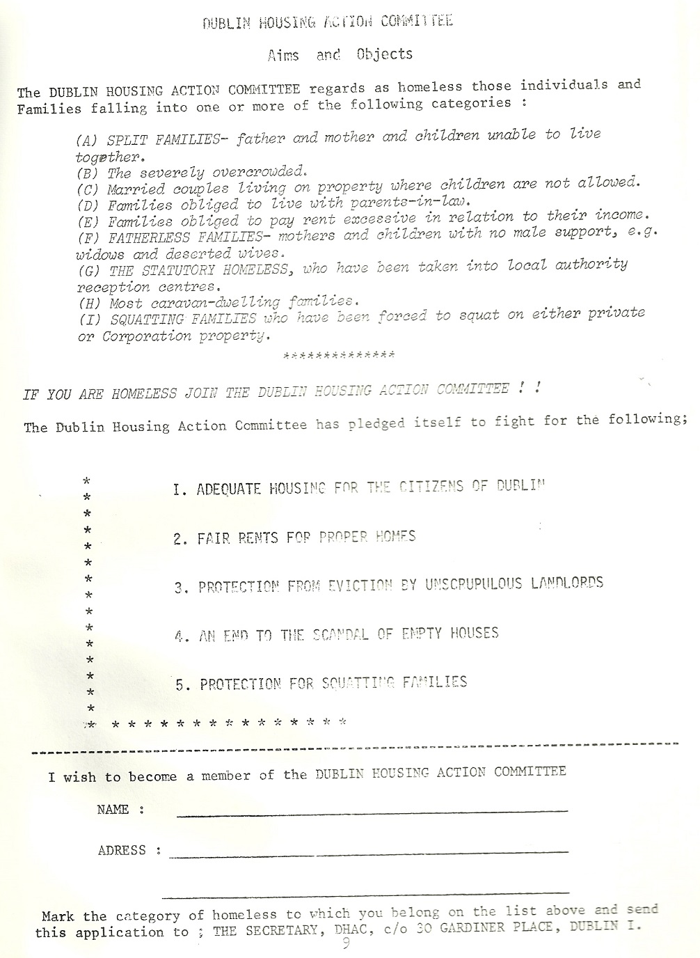 From 1969 the Aims and Objectives of The Dublin Housing Action Committee » aimsobjects
