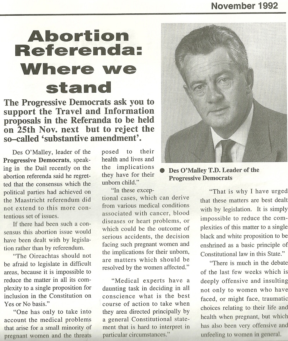 From 1992 Progressive Democrats Des O’Malley outlines the partys reasons to vote No on the Abortion Referendum. » abort92