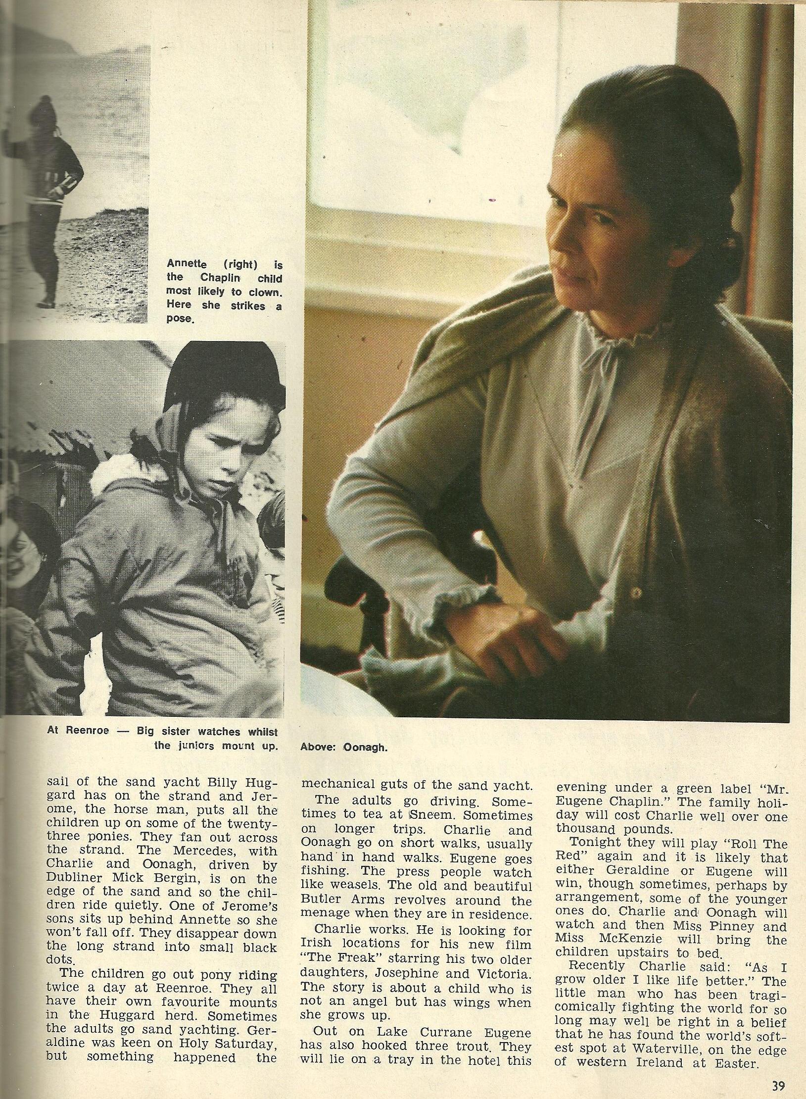 1971 article about Charlie Chaplin and his family holidaying in Waterville, Co Kerry June 20, 2013