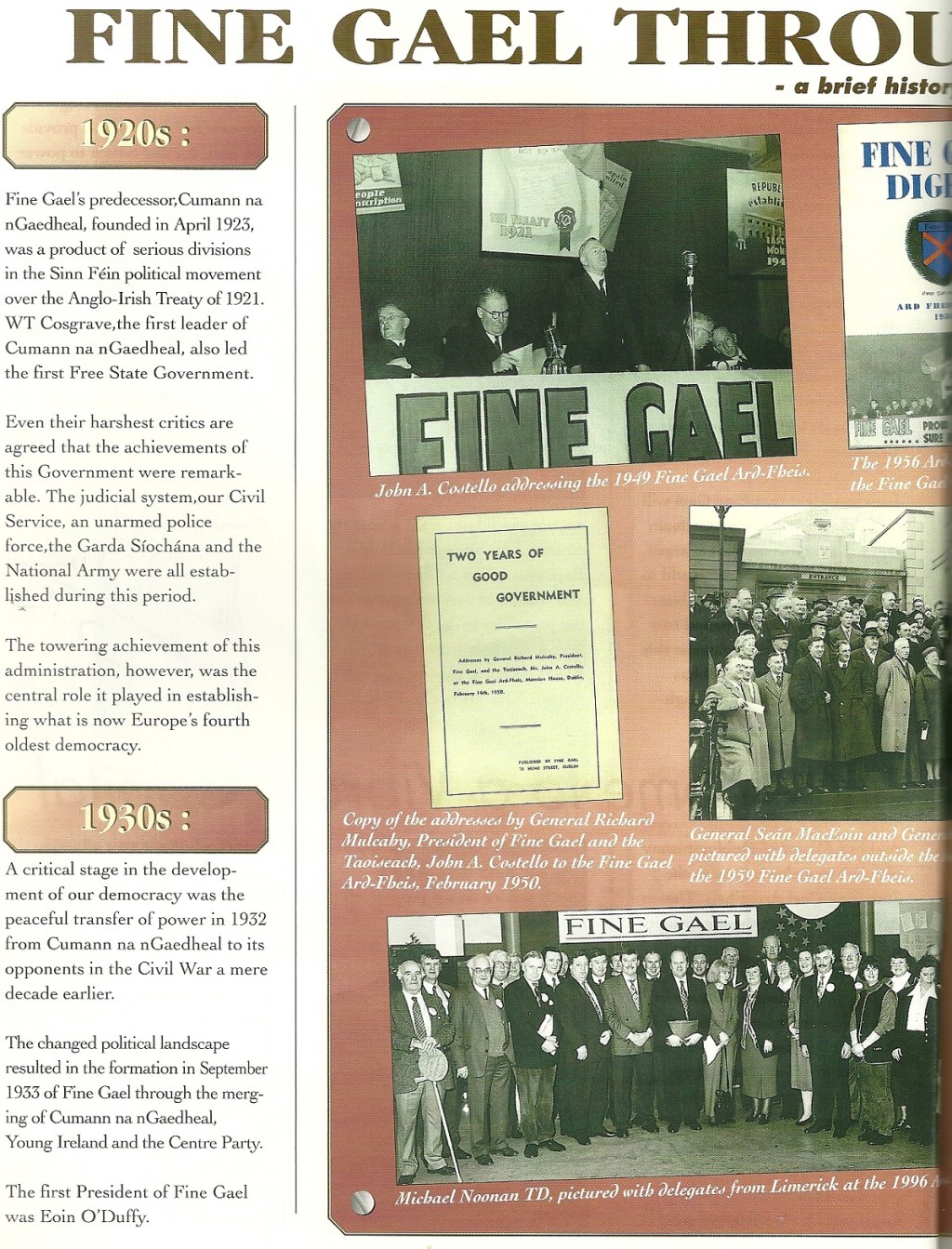 “Fine Gael Through The Decades” Article from the 1999 Fine Gael Ard Fheis Booklet » fgthroughyears1