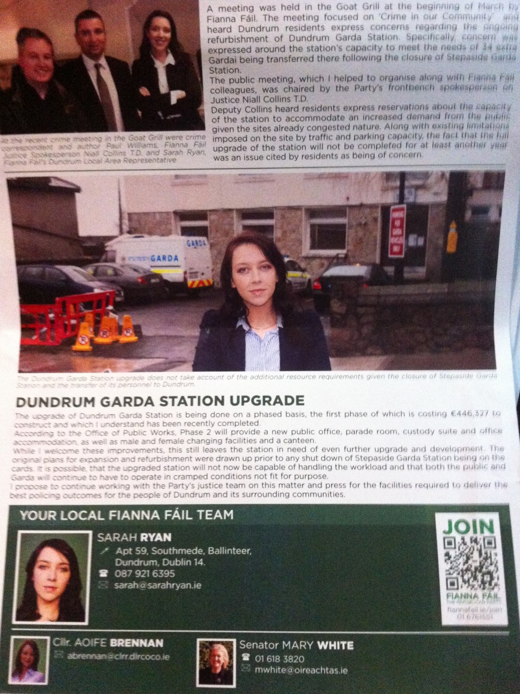 Leaflet from Fianna Fail Dundrum Local Area Rep Sarah Ryan. » sryan2