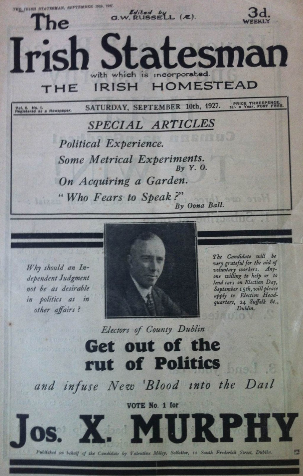 Joseph Xavier Murphy -Independent -September 1927 General Election Dublin County » josephxmurphy