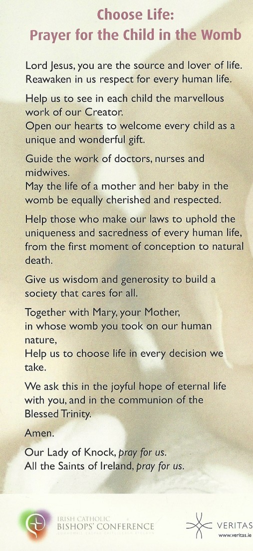 ‘Choose Life:’ Anti Abortion Leaflet with a prayer from the Irish Catholic Bishops Conference » bishops2