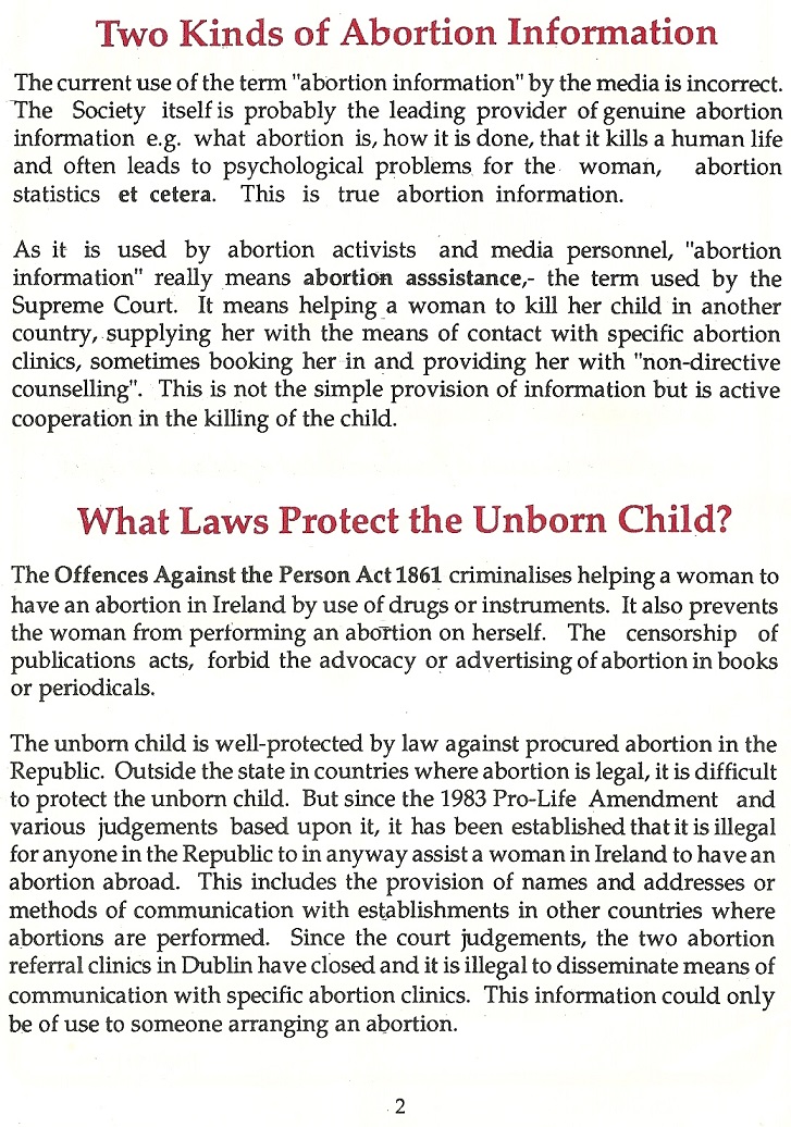 1991 Anti Abortion Information leaflet from SPUC (with an unusual graph) » spucinfo2
