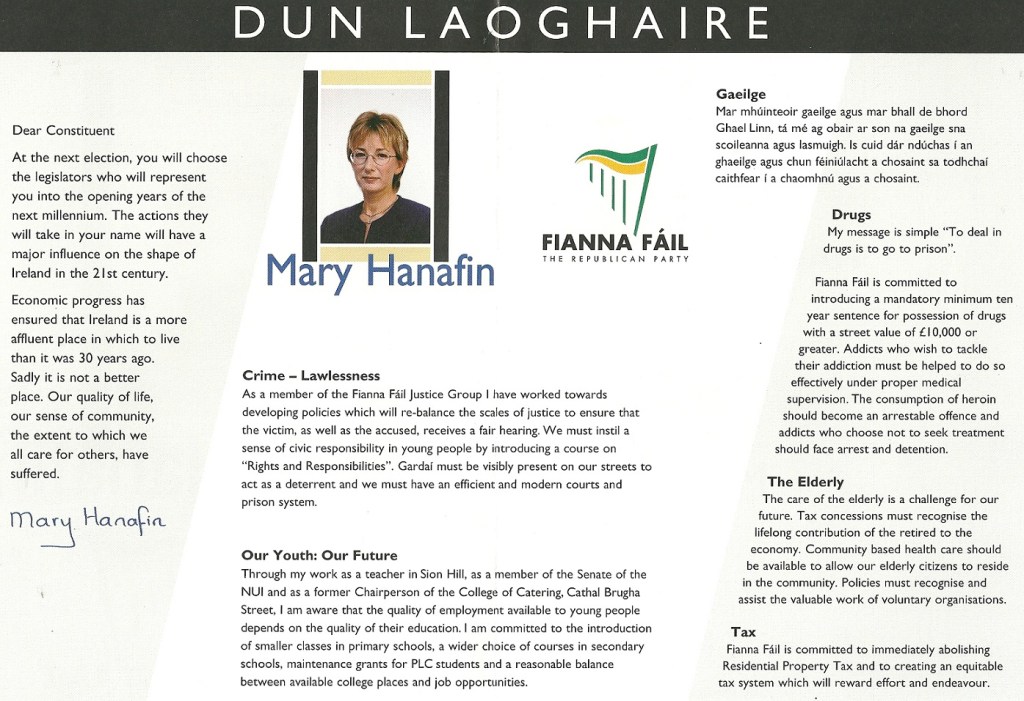 1997 Leaflet from Mary Hanafin -Fianna Fail -Dun Laoghaire » mhanafin97b