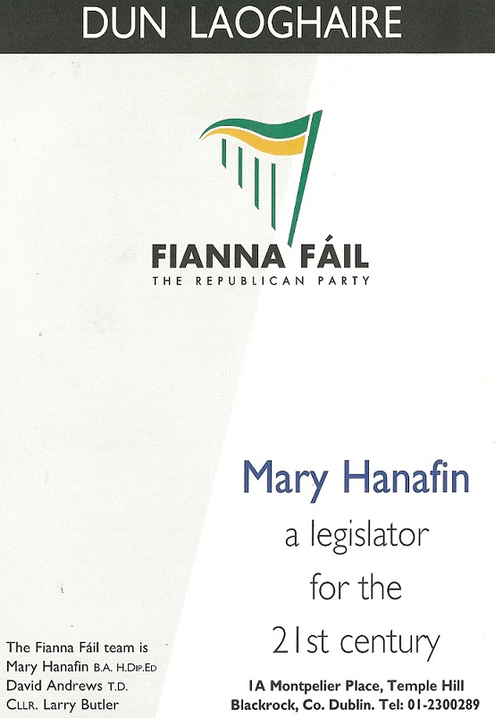 1997 Leaflet from Mary Hanafin -Fianna Fail -Dun Laoghaire » mhanafin97c