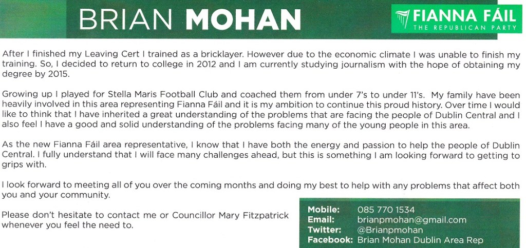 Flyer from Brian Mohan- Fianna Fail – North Inner City » bmohan2