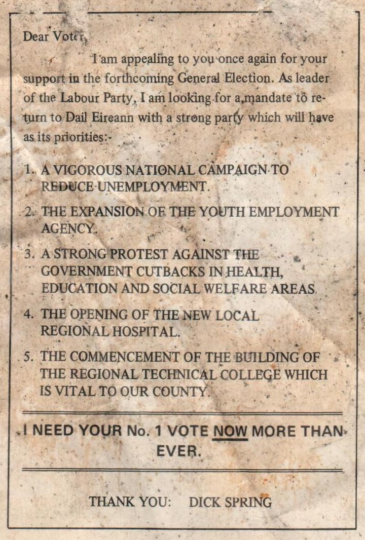 Leaflet from Dick Spring -Labour- Kerry North- November 1982 General Election » spring2