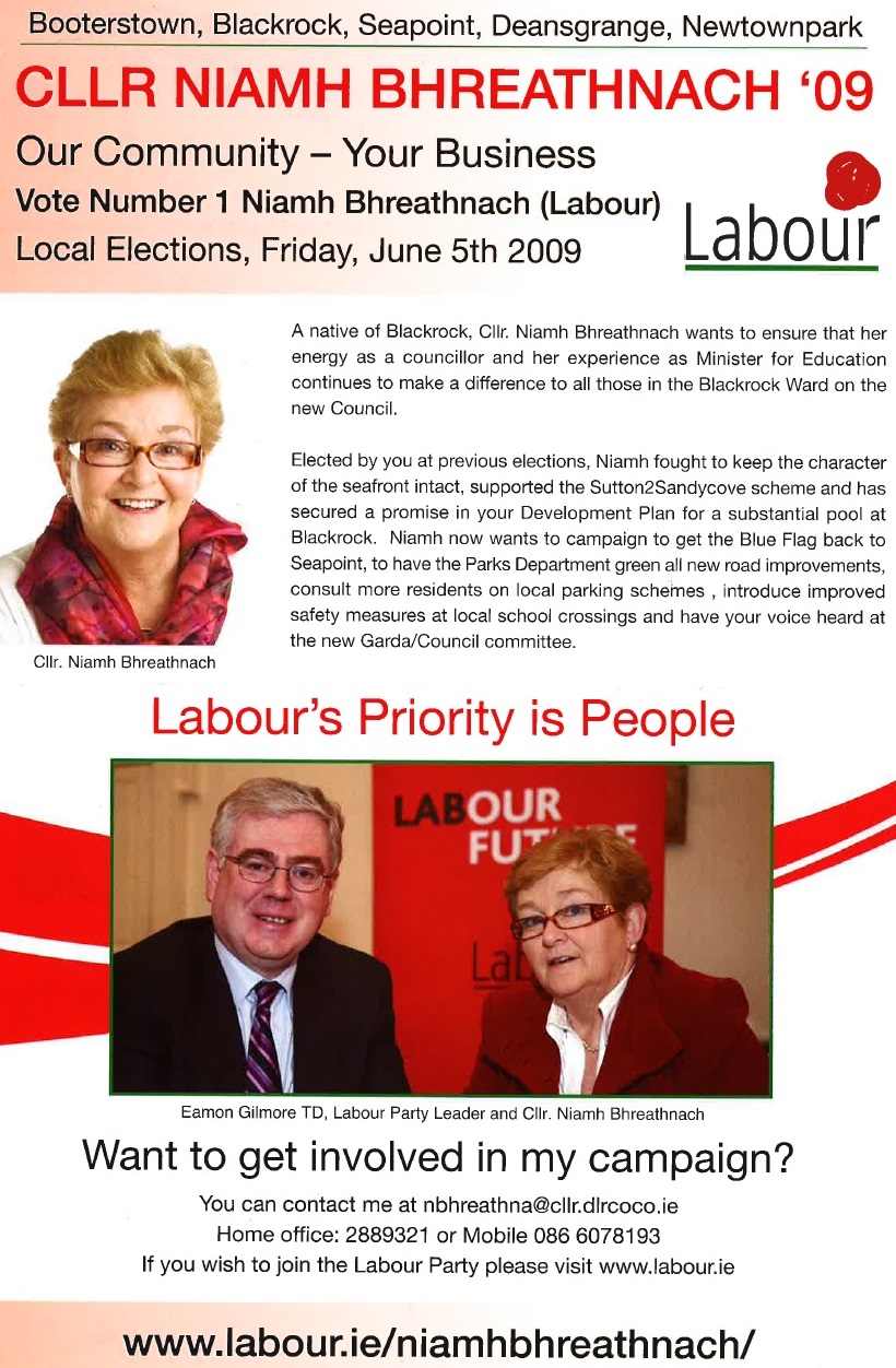 Leaflet from Niamh Bhreathnach- Labour Party -2009 Local Elections -Blackrock » nbhreathnach09a