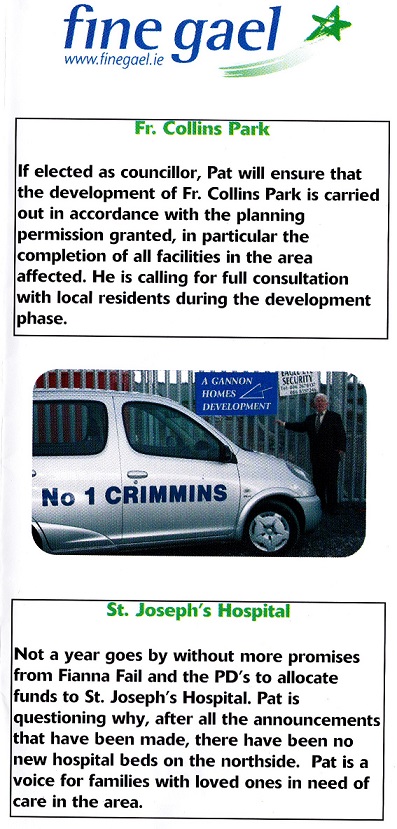 Leaflet from Pat Crimmins -Fine Gael -Donaghmede -2004 Local Elections » pcrimmins2b