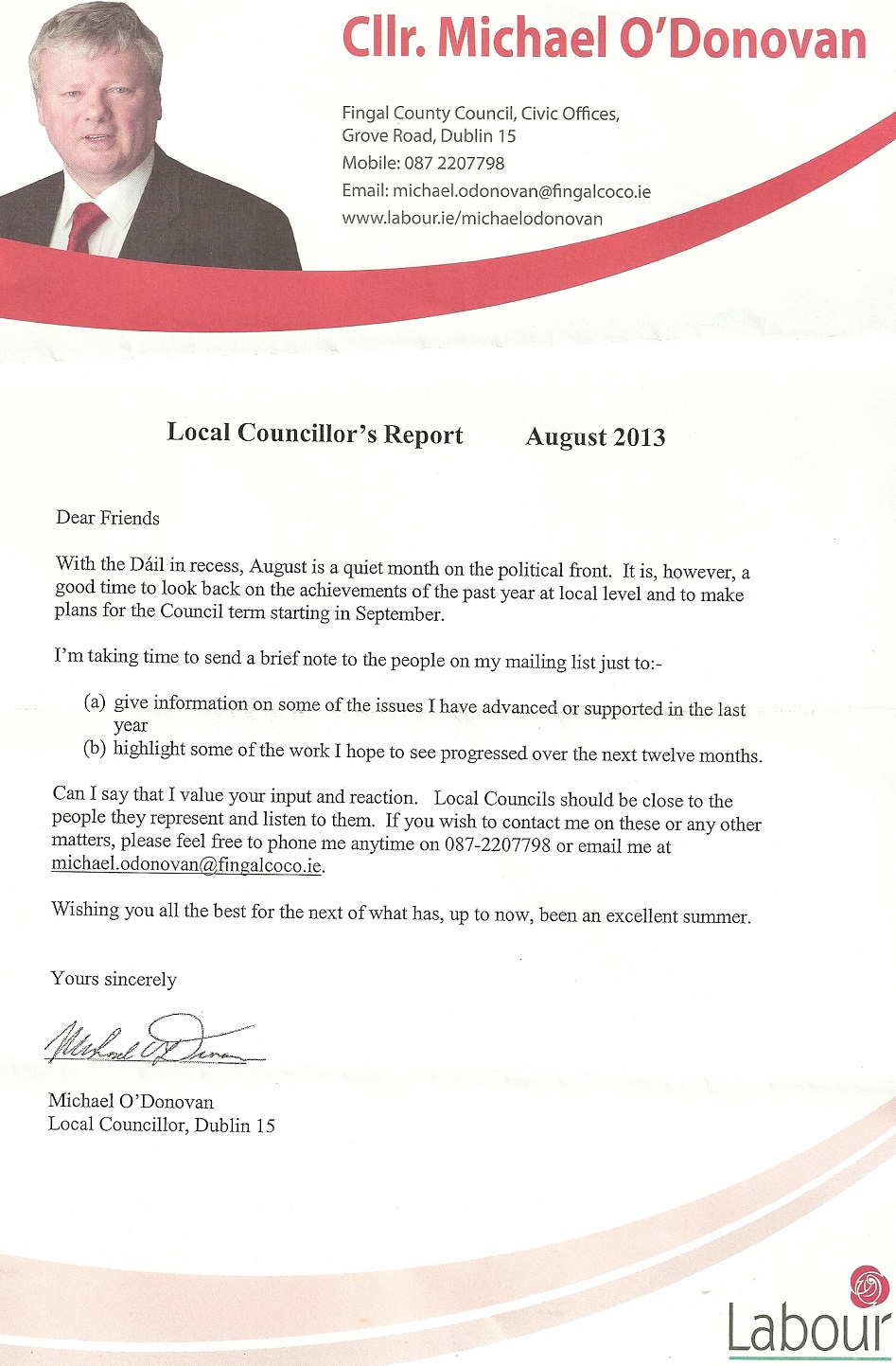 “Local Councillors Report August 2013” -Michael O’Donovan -Labour Party- Mulhuddart » modon1