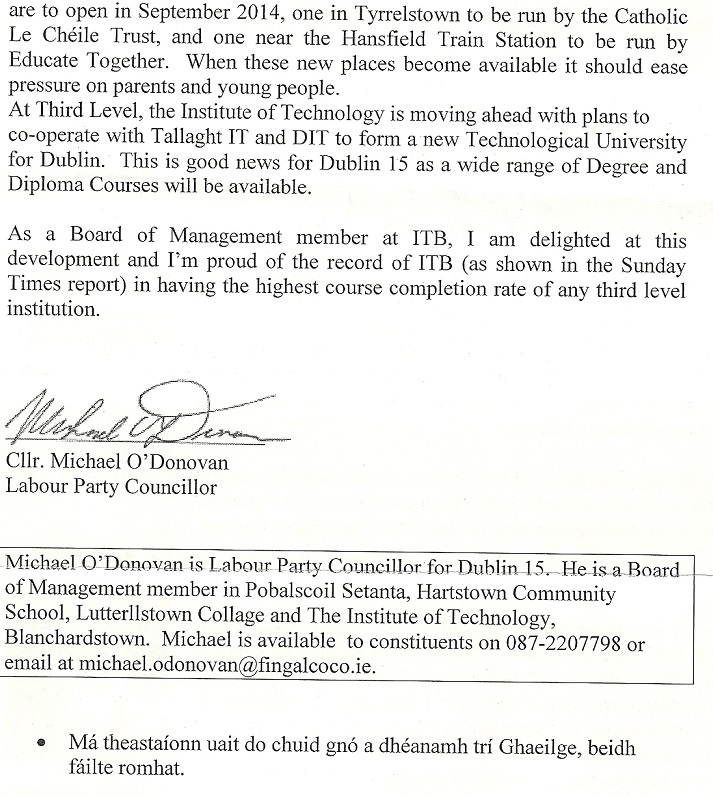 “Local Councillors Report August 2013” -Michael O’Donovan -Labour Party- Mulhuddart » modon3