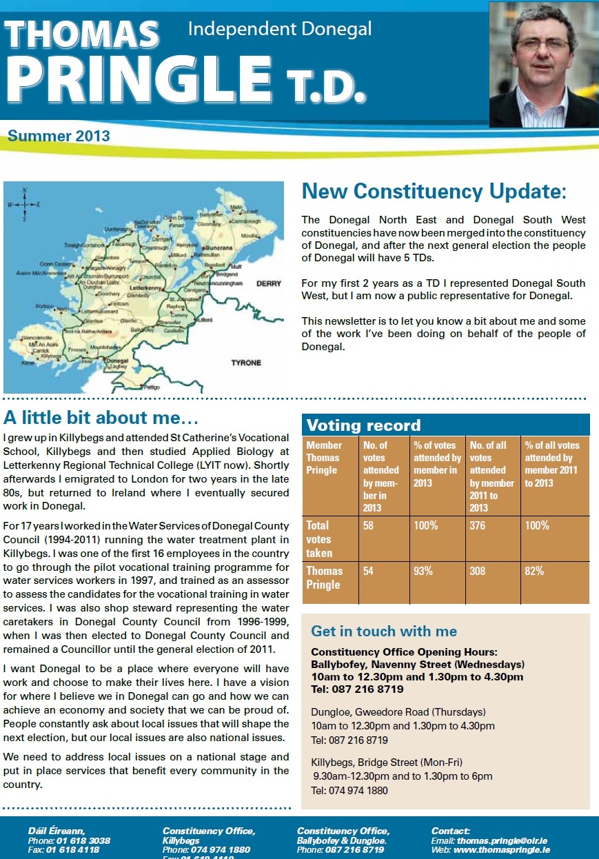 Summer 2013 newsletter from Thomas Pringle -Independent -Donegal » tpringles13a1