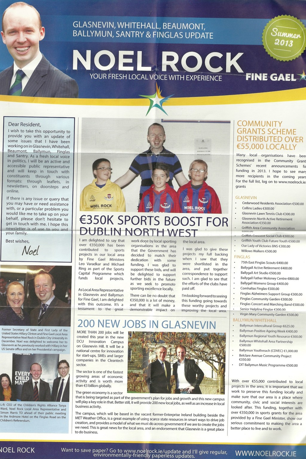 Summer 2013 Newsletter from Noel Rock, Fine Gael Local Rep for Glasnevin and Ballymun » nrocksum13a